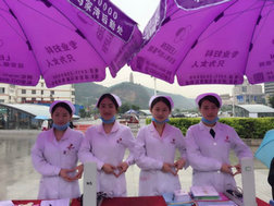 5月31日一大早,俪人医院护理部的工作人员带着提前备好的宣传资料、横幅、桌椅、伞赶赴解放剧院广场,开始了一天的宣传工作。活动一开始便吸引了一大批市民,他们纷纷从四面八方赶来,非常认真的听取了医护人员有关吸烟危害的专题讲解。活动现场医护人员免费为市民测量了心率、血压,并为部分女性市民免费赠送了护手霜。