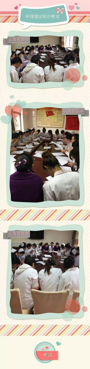 紧接着,延安俪人全体护理人员又马上进行了护理理论知识考试,考试的目的是进一步强化护理基础理论知识,切实提高护理人员护理业务水平和业务能力。