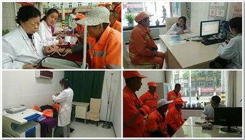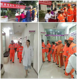 当身着工作服的医护人员刚坐下,前来问诊的环卫工人就络绎不绝地来到现场,在我院医护人员的引导下,有秩序地进行检查。