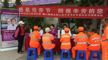 5.14母亲节到了,为了让每个母亲度过一个健康、愉快的节日,今日上午,延安俪人医院携同原延安大学附属医院妇产科主任贺雪萍教授在南市街道马家湾社区开展了“感恩母亲节 回报辛劳的您”为主题的公益活动,为百余名环卫工人免费体检。